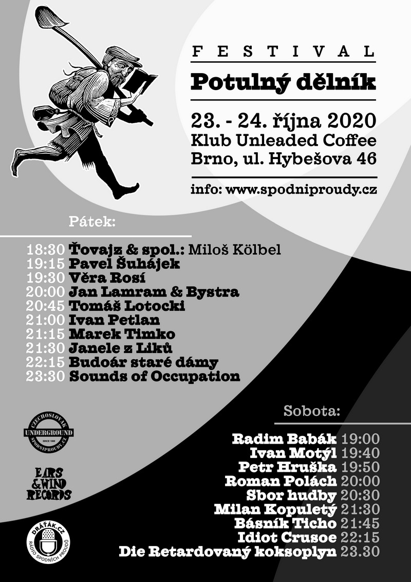 Vzhledem k zákazu veřejných akcí byly veškeré akce odsunuty na lepší časy. V termínu Potulného dělníka 24. října proběhne Veřejná zkouška protistátní filharmonie DIE RETARDOVANÝ KOKSOPLYN. Místo a čas konání sdělíme vážným a prověřeným zájemcům.